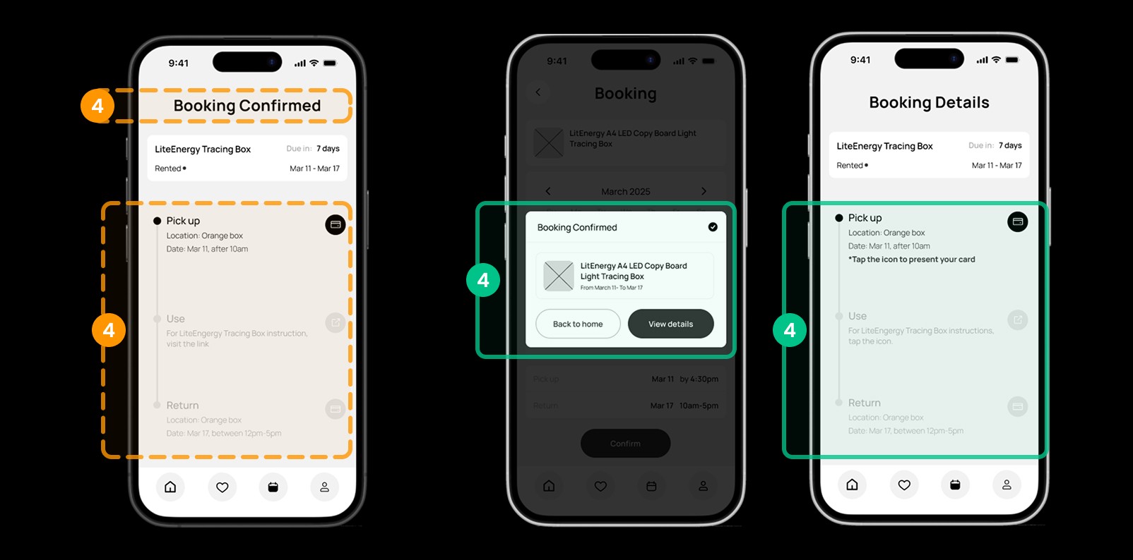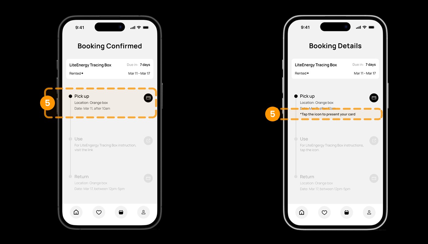 Our participants thought this page was only accessible once, which isn’t our intention since users need to access it again and again when they pick up, use, or return items.