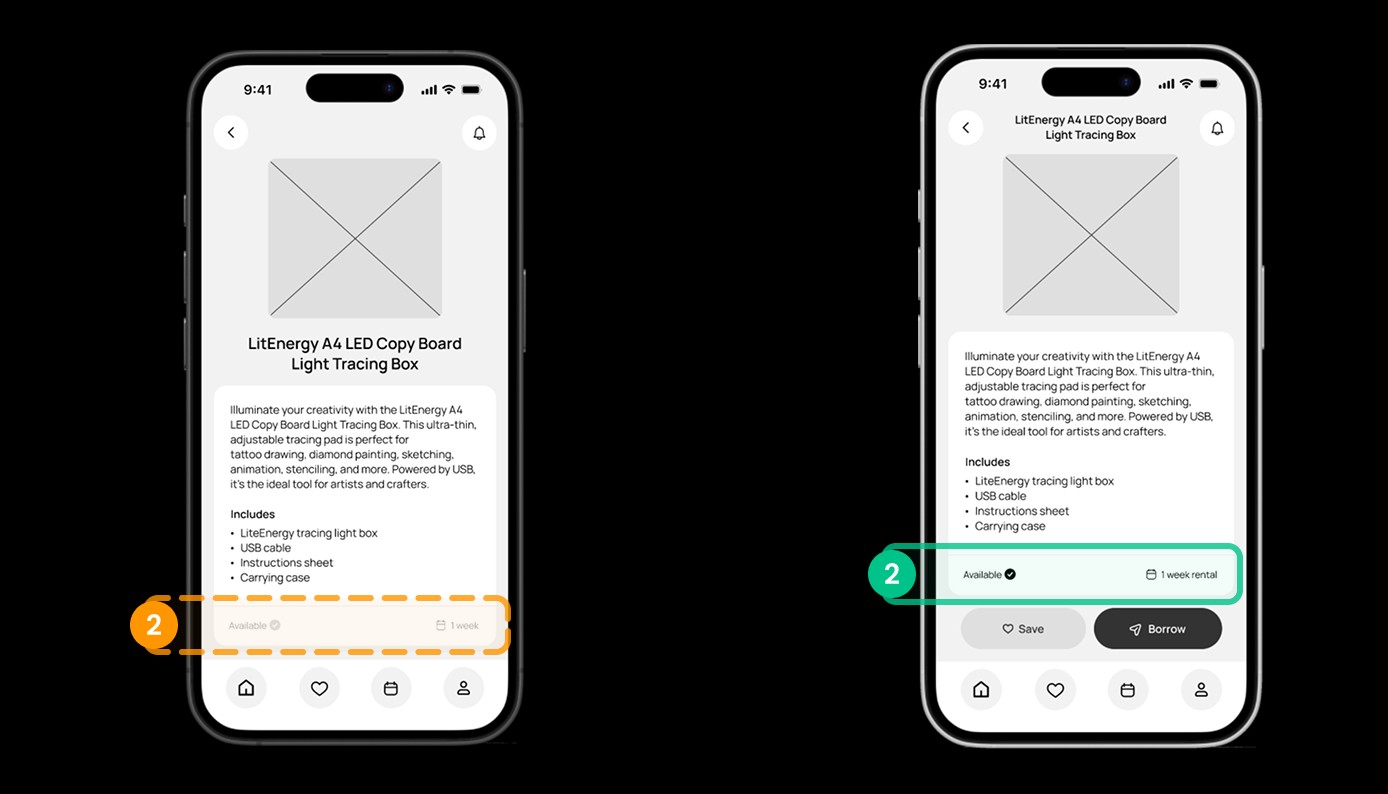 Ensured users can identify item availability before proceeding to borrow.